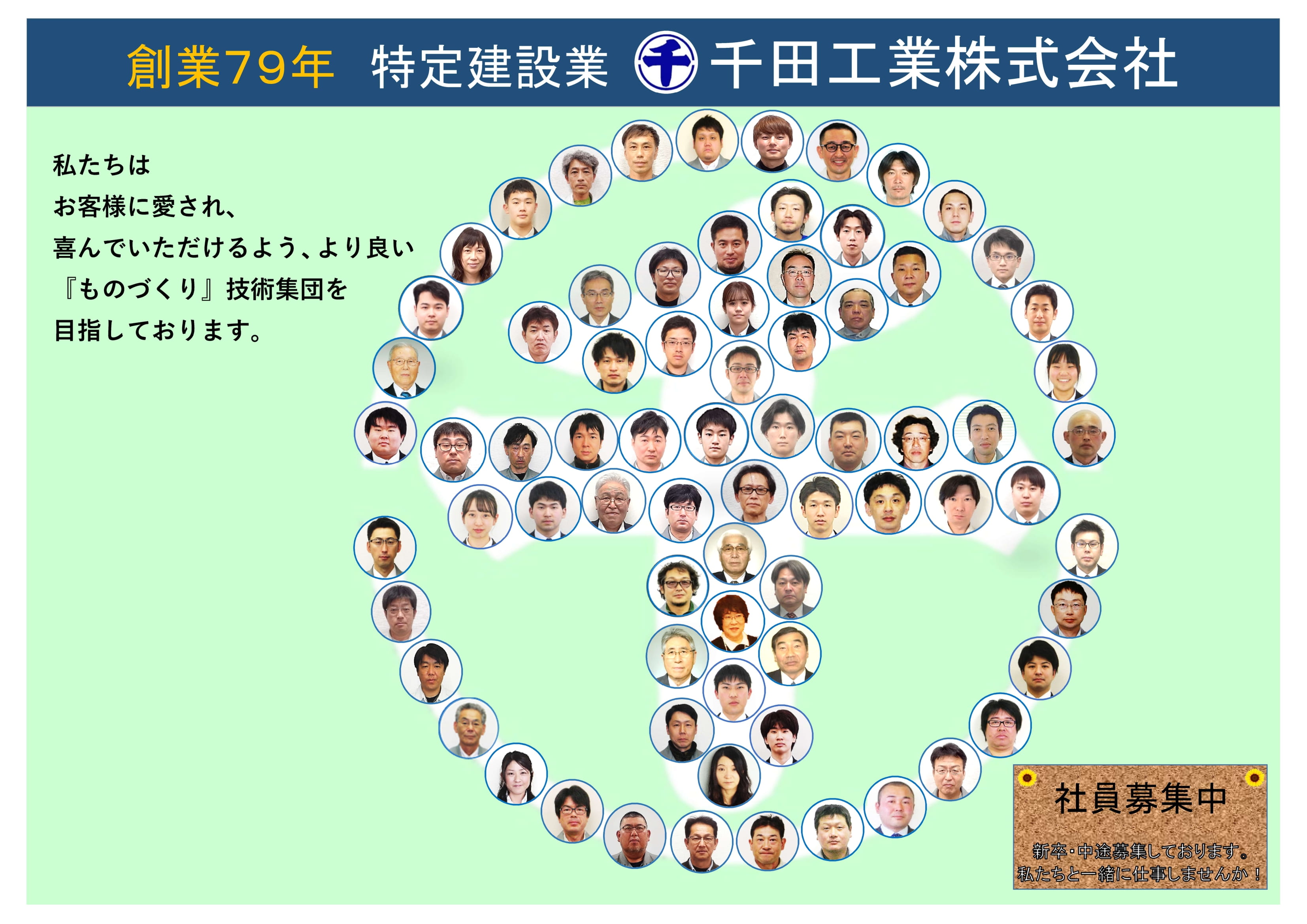 創業者の想いを引き継ぎ、理想とする会社像『働きがいがあって、元気でやさしく、誠実で品格のある会社』を目指し、社員一丸となって創業100年へ向けて一路邁進してまいります。