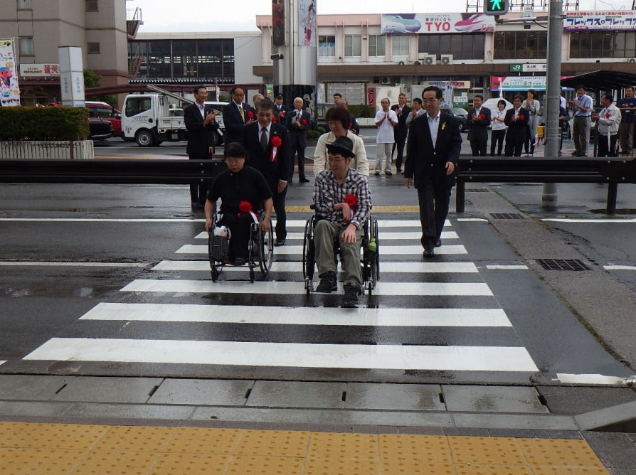 新設した横断歩道で渡り初めをし、車イスで横断した方からも喜びの声をいただくことができました。