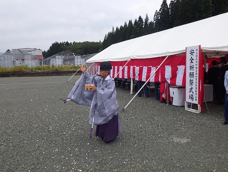 工事の安全を願い、北上地区消防組合、北上市、そして西和賀町の皆さまとともに安全祈願祭を執り行いました。